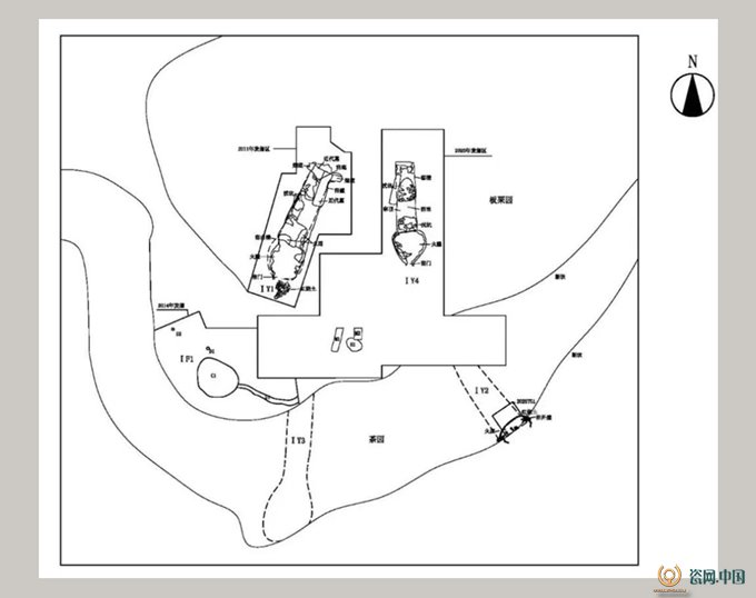 竹林坑窑址自2009年第三次全国文物普查发现以来,经多次调查,周边共发现11处同时期窑址、作坊与居住遗址,极大地丰富了该聚落的文化内涵,明确这里是一处规模较大、布局完整、生产体系清晰的西周早中期原始瓷生产聚落(图2)。其中竹林坑一号窑址历经2011年、2014年两次小规模试掘,发现三座洞穴式龙窑(1Y1~|Y3)以及一处作坊遗迹(IF1)。
