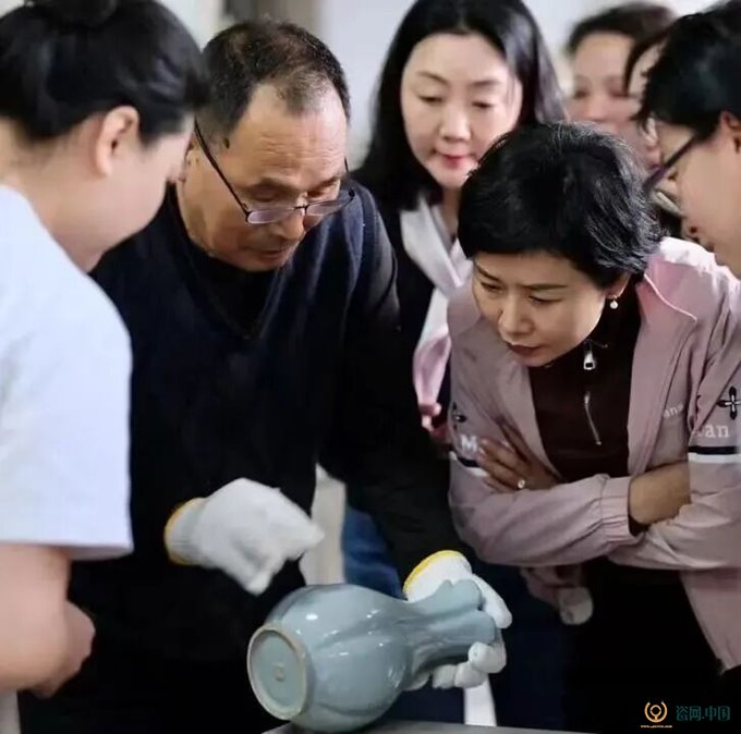 朱文立向来访嘉宾介绍汝官瓷