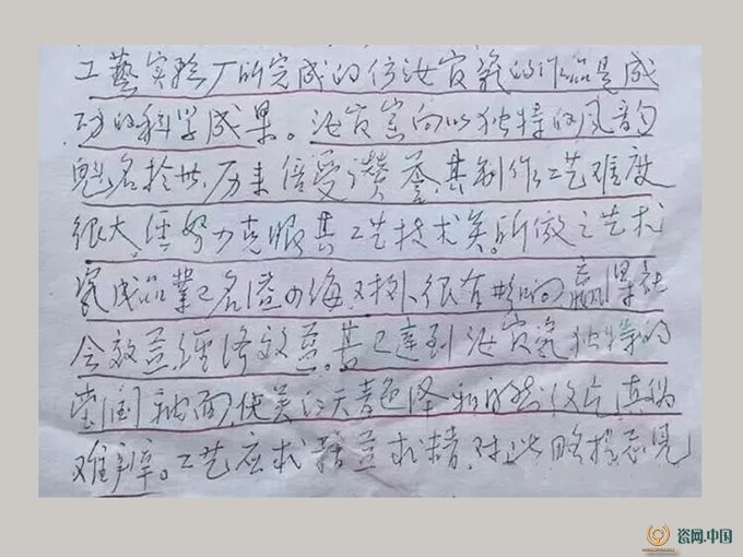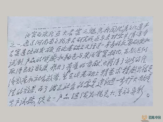 耿宝昌对朱文立所复烧的北宋汝官瓷的评审意见(局部)